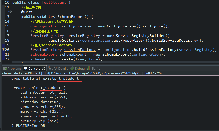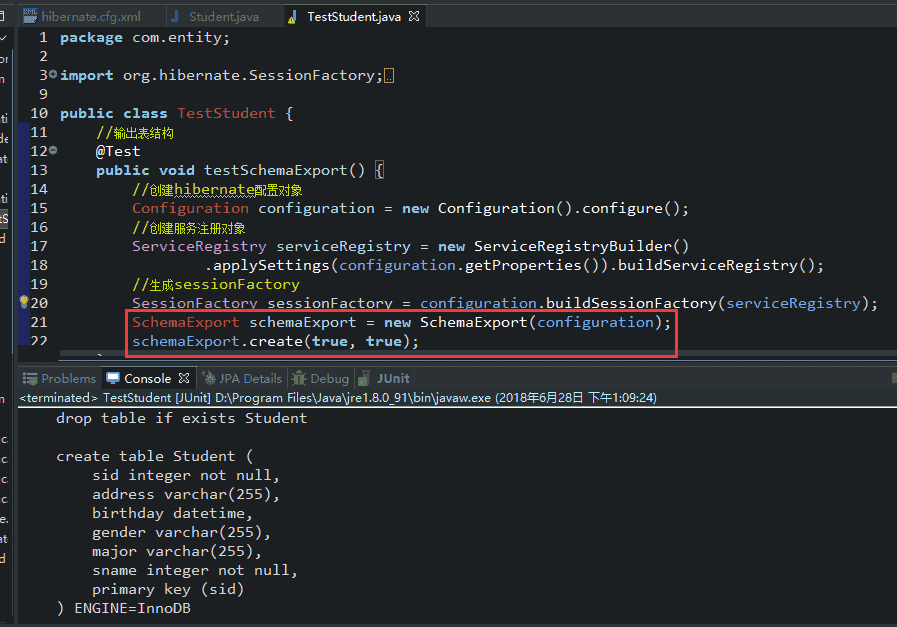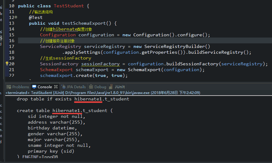(3)创立一个test源包,编写student的测试类,输出表结构