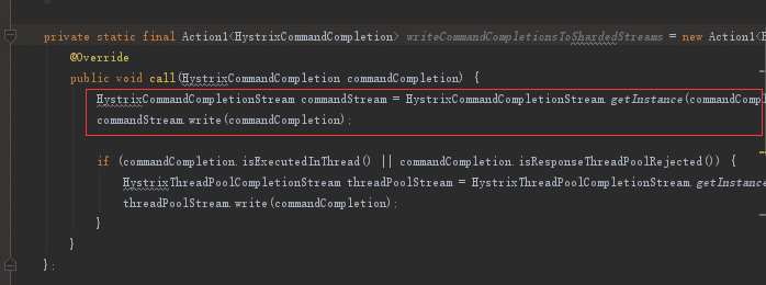 getInstance方法而后在executionDone方法中,会根据executionResult生成一个HystrixCommandCompletion事件,而后将它传递给一个叫wirteOnlyCommandCompletionSubject的实例成员变量。