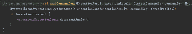 handleCommand内容3. HystrixCommandMetrics这个类本身的使用途是作为所有Command的指标衡量的一个工具,在markCommandDone方法中直接调使用了HystrixThreadEventStream的executionDone方法