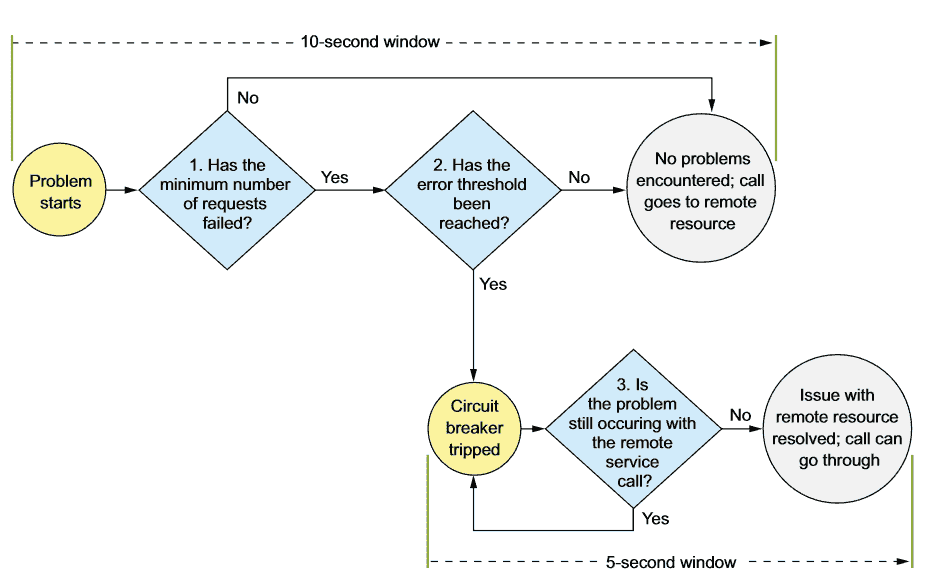 Hystrix熔断机制流程图(转自Spring MicroServices in Action)当出现问题时,Hystrix会检查一个肯定时长(图中为10s)的一个时间窗(window),在这个时间窗内能否有足够多的请求,假如有足够多的请求,能否错误率已经达到阈值,假如达到则启动断路器熔断机制,这时再有请求过来就会直接到fallback路径。在断路器打开之后,会有一个sleep window(图中为5s),每经过一个sleep window,当有请求过来的时候,断路器会放掉一个请求给remote 服务,让它去试探下游服务能否已经恢复,假如成功,断路器会恢复到正常状态,让后续请求重新请求到remote 服务,否则,保持熔断状态。