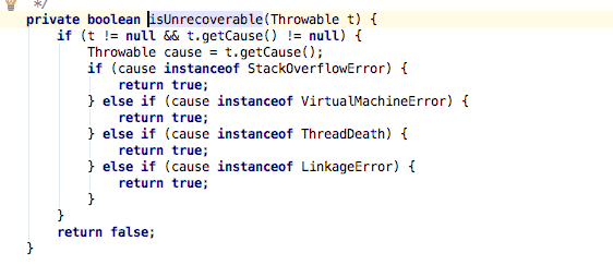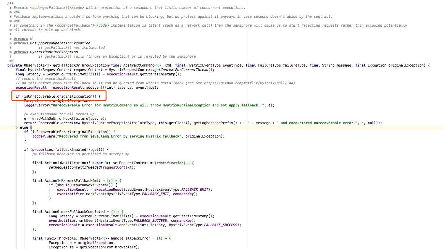 中的Error,那么Hystrix不会进入fallback方法,而会直接抛出HystrixRuntimeException,由于这几个Error被认为是不可恢复错误。