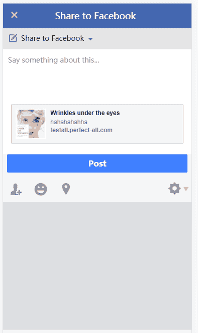 分享代码如下:location.href = `https://www.facebook.com/sharer/sharer.php?kid_directed_site=0&u=${url}`url: 该链接和meta部分的og:url值一模一样,就是哪个标准的分享网页地址!