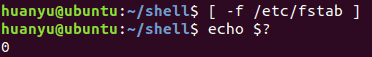 huanyu@ubuntu:~/shell$ [ -f /etc/fstab ]huanyu@ubuntu:~/shell$ echo $?