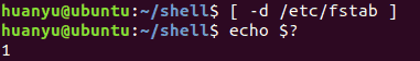 huanyu@ubuntu:~/shell$ [ -d /etc/fstab ]huanyu@ubuntu:~/shell$ echo $?