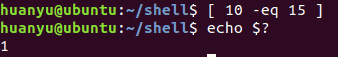 huanyu@ubuntu:~/shell$ [ 10 -eq 15 ] huanyu@ubuntu:~/shell$ echo $?
