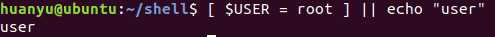 huanyu@ubuntu:~/shell$ [ $USER = root ] || echo "user"