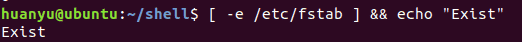 huanyu@ubuntu:~/shell$ [ -e /etc/fstab ] && echo "Exist"