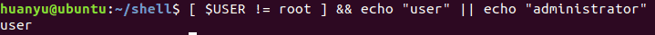 huanyu@ubuntu:~/shell$ [ $USER != root ] && echo "user" || echo "administrator"