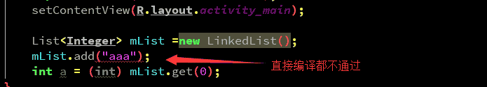 List mList =new LinkedList();mList.add("aaa");int a = (int) mList.get(0);