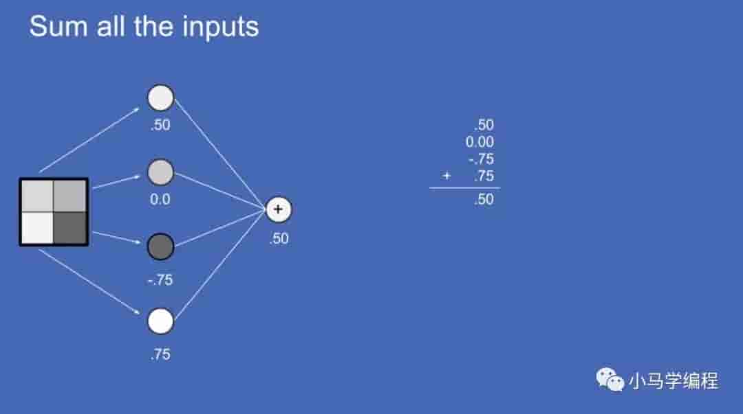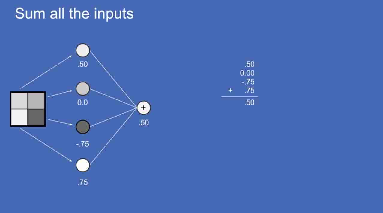 我们将前一层神经元的输入,输入相求和得出该神经元。