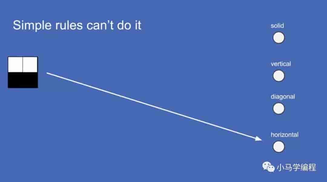 这里列出四种情况,但是实际情况还具体分析一下,图根据像素位置和灰白程度不同应该不仅仅是这四种。看下图就知道这里还有其余情况,不过下图中两种情况我们都归结为 horizontal? 水平分布。