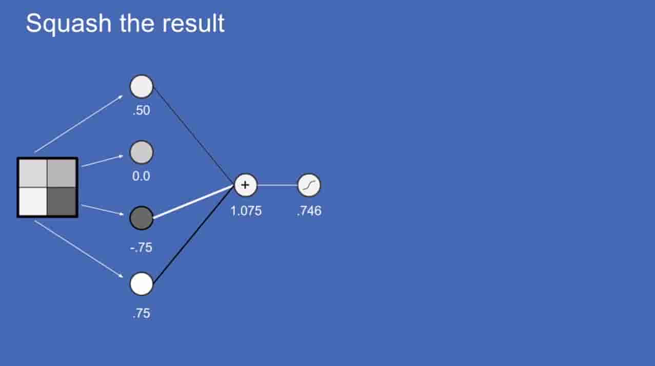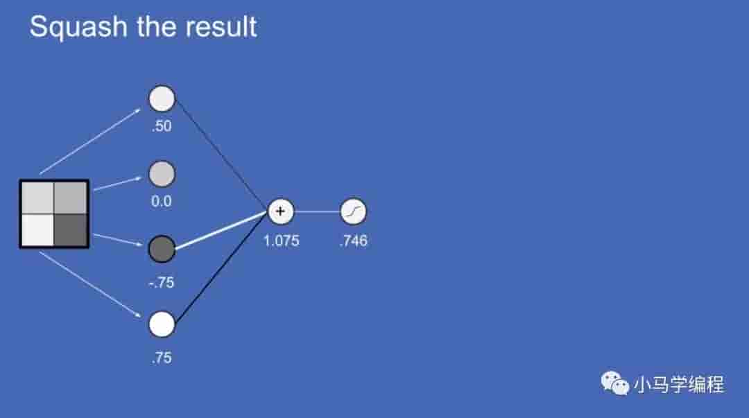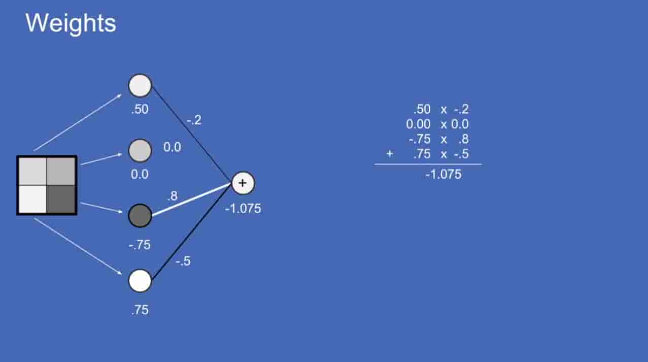 我们将每条连接线附上加权值,将每个神经元的值乘上权重值后相加得出值作为下一个神经元的输入值。
