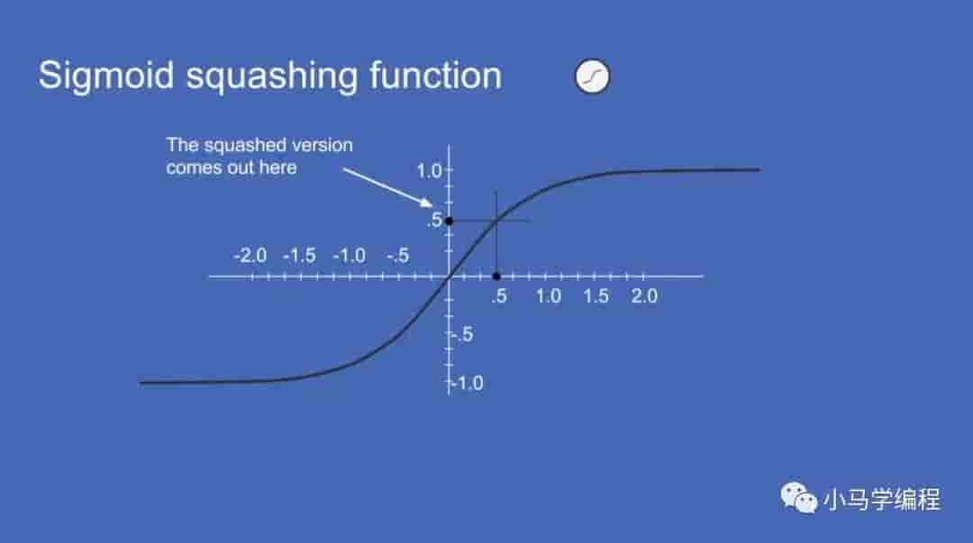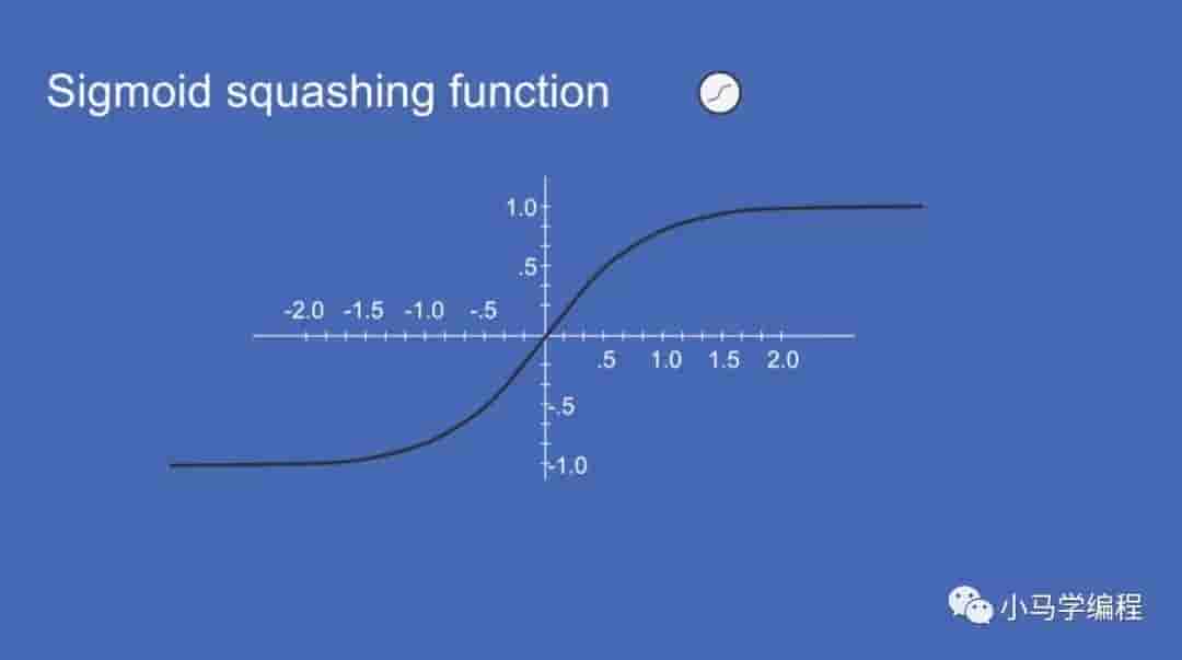 我们需要将结果值控制或者者说压缩在-1 到 1 之间。这里我们通过 sigmoid 函数进行压缩 sigmoid 函数是 s 型。