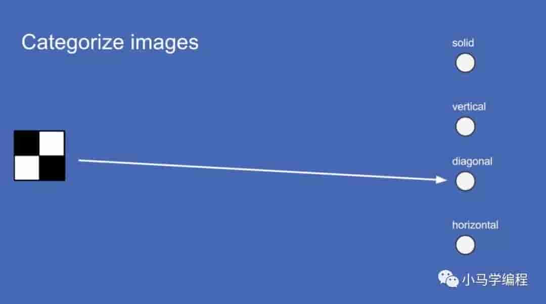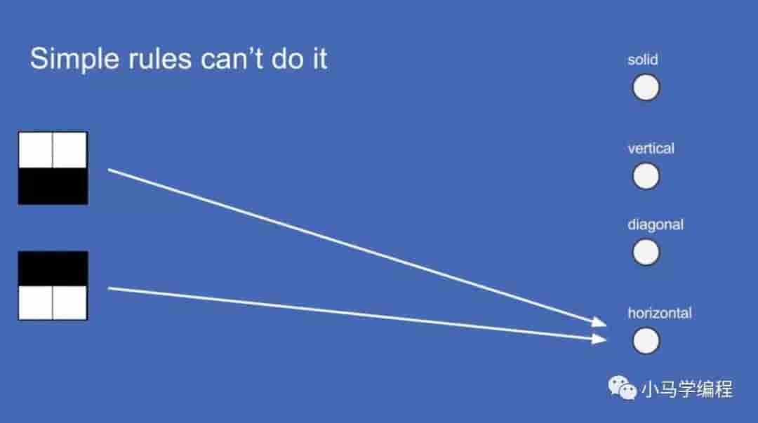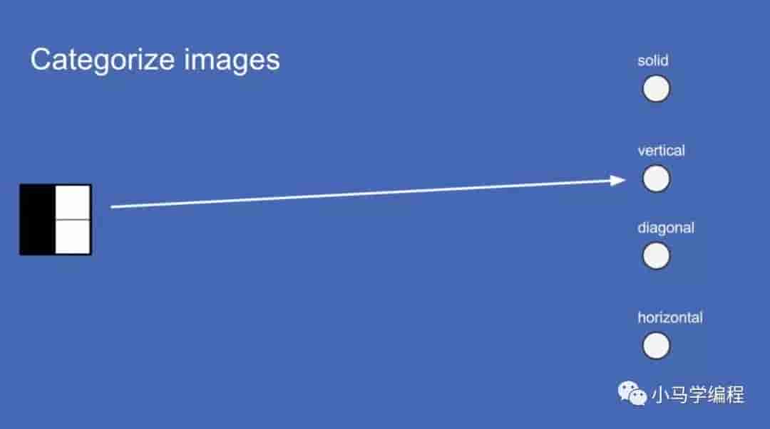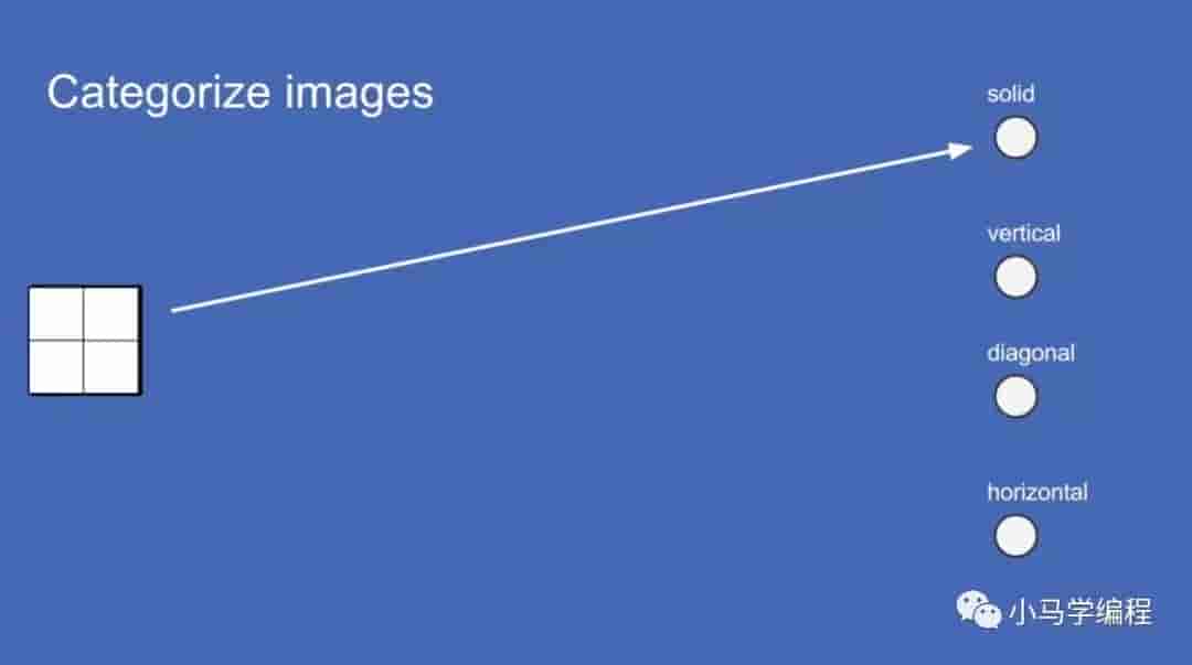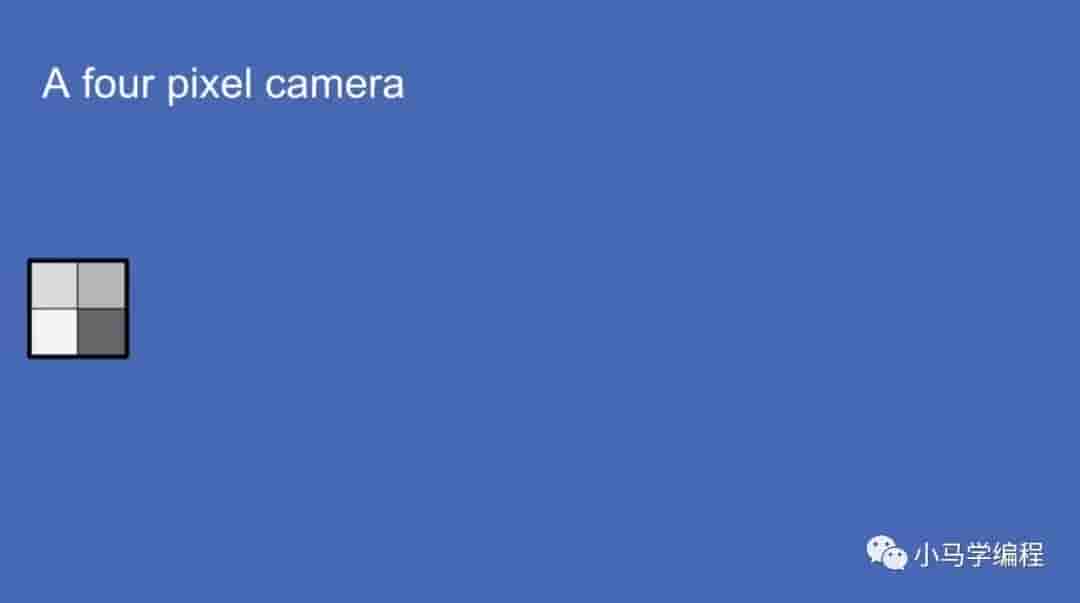 我先从简单图形开始,这里的图形是由 4 个像素组成的。每个像素有着不同的灰度值。我们根据像素不同的灰度值进行分类。