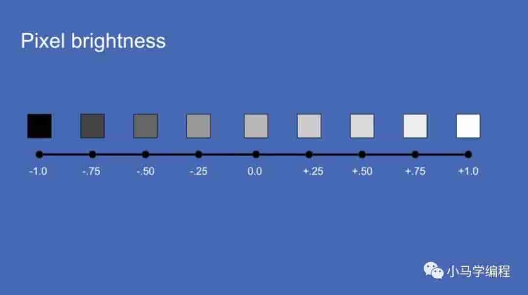 用 -1 到 1 区间的值来对应灰度值,黑色用 -1 而白色用 1 来表示。