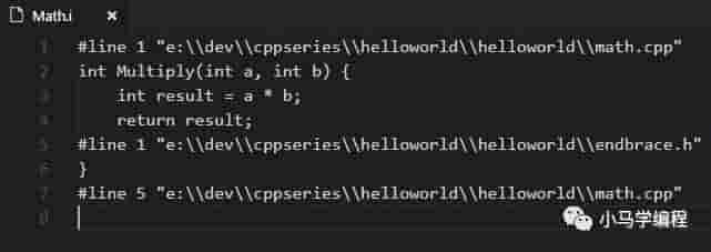 这里我用 visual studio code 打开 Math.i 文件。看图我们发现实际上就是将包含预解决语句(#include) 替换为 EndBrace 中的内容。