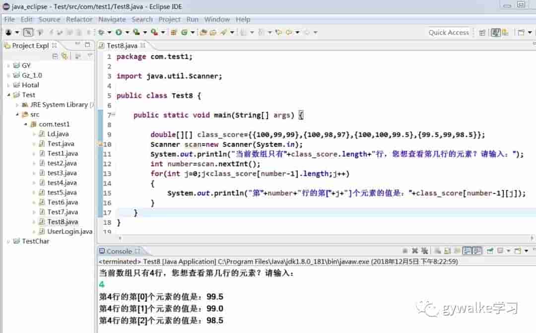 System.out.println("第四行第一列元素的值:"+class_score[3][0]);