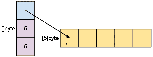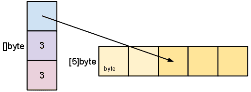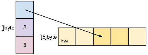 b := []byte{'g', 'o', 'l', 'a', 'n', 'g'}// b[1:4] == []byte{'o', 'l', 'a'}, sharing the same storage as b