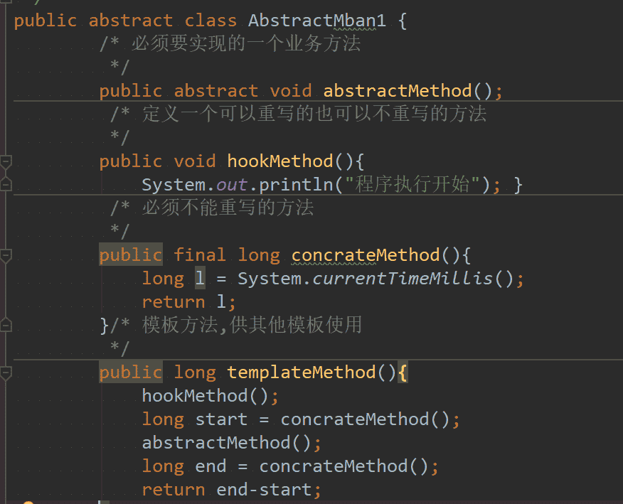 ? ? ? ? ? ? ? ? ? 定义三种方法:第一个笼统方法需要子类去实现,子类必需实现第二次扩展方法,是一个空方法,子类可以去复写也可以不复写。第三个私有的最终方法,是不可以复写的。第四个模板方法定义了每一个方法的执行顺序和逻辑。