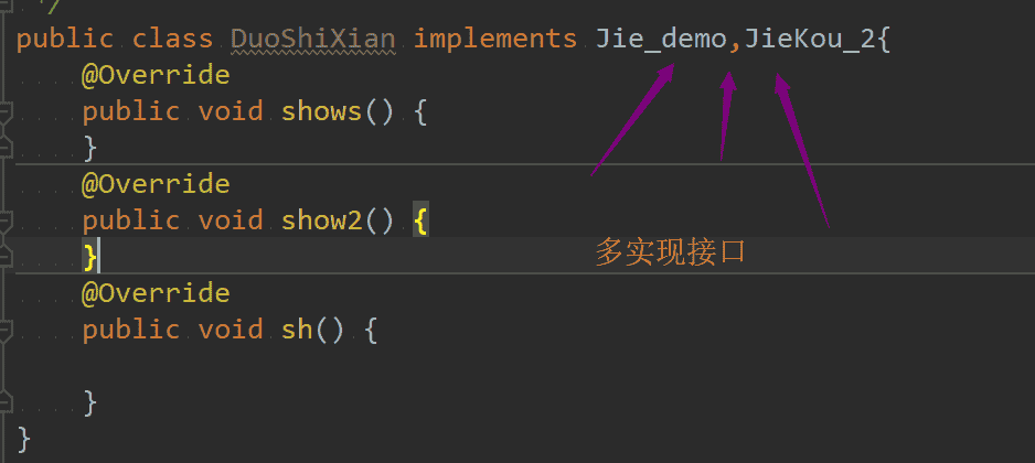 ? ? ? ? ? ? class? +类名+implements +接口名,接口名,........{