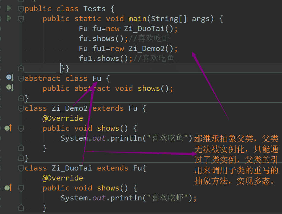 ? ? ? 1.必需有继承关系,在笼统类中可以定义多态的笼统方法,通过子类来继承这个笼统类而后复写笼统类中的笼统方法以达到多态的效果。