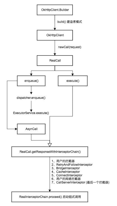 (1)、当我们通过OkhttpClient创立一个Call,并发起同步或者异步请求时;
