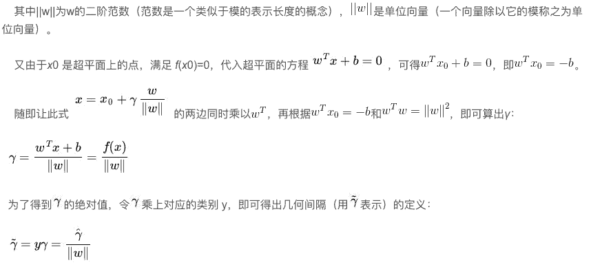 但是这个函数间隔有个问题,就是我成倍的添加w和b的值,则函数值也会跟着成倍添加,但这个超平面没有改变。所以有函数间隔还不够,需要一个几何间隔。