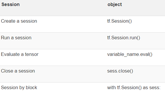 会话将从图中执行操作。 要使用张量值来提供图形,您需要打开会话。 在会话内,运行操作以创立输出。