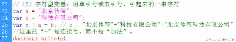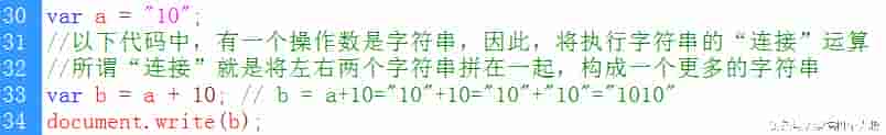 (2)假如“+”左右有一个操作数是字符的话,那么,另一个值将转成字符串。这两个操作数进行的是“连接”运算。