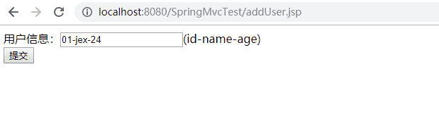 除了Date类型的转换,我们还可以自己设置其它的数据格式,比方注册一个user,通过转换器将前台页面输入的"id-name-age"形式的String类型的数据直接转换为user对象。