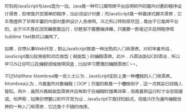 不过,HTML适用于广泛领域,因而,对初学者来说HTML是一种简易的语言(不是编程语言),HTML还是值得一提。HTML广泛用于Web开发,因而你可以在此基础上学习CSS (与HTML一样,CSS同样不是一种真正的编程语言),最后再学习像JavaScript这些标准的编程语言。