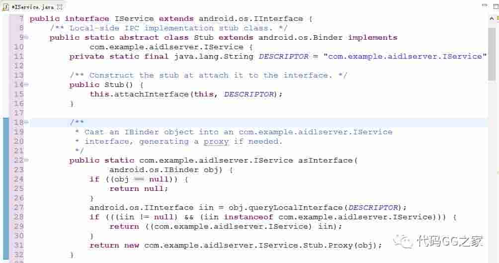 其中Stub类有一个叫asInterface的静态方法,主要用来返回这个Stub接口的实例。