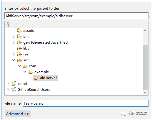 1. 把Server端中的IService.aidl拷贝一份到Client端工程目录下,注意放的路径的包名肯定要和Server端相同。