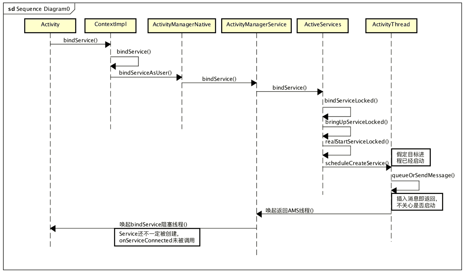 mRemote.transact(BIND_SERVICE_TRANSACTION, data, reply, 0)的确会让APP端调用线程阻塞,等待AMS执行BIND_SERVICE_TRANSACTION请求,不过AMS在执行这个请求的时候并非是唤醒Service才返回,它返回的时机更早,接着看ActivityManagerService,