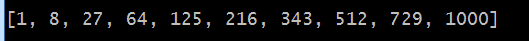 cubes=[]for v in range(1,11): cube=v**3 cubes.append(cube)print(cubes)