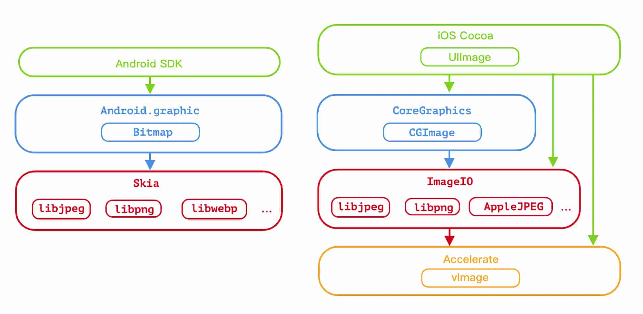 根据我的理解,画了一下 iOS&Android 图片解决架构。iOS 这边,也是可以直接调用底层一点的框架的。