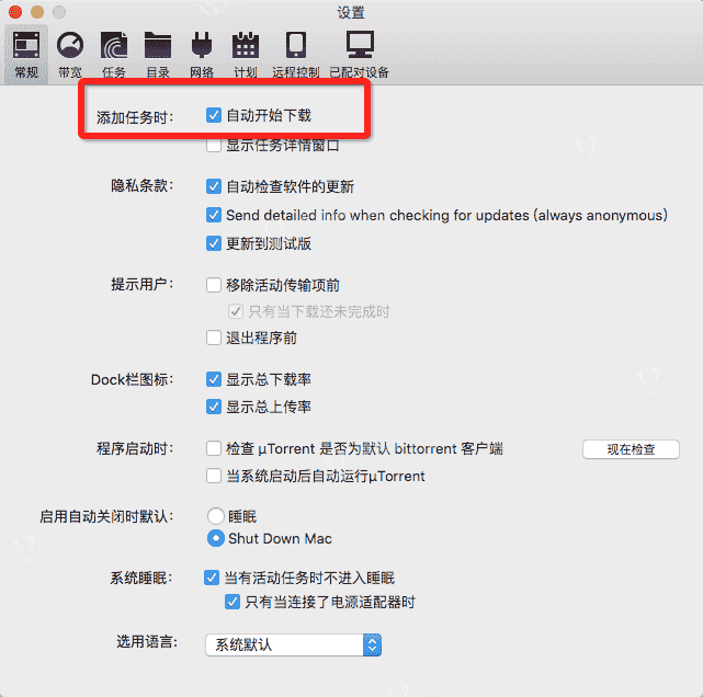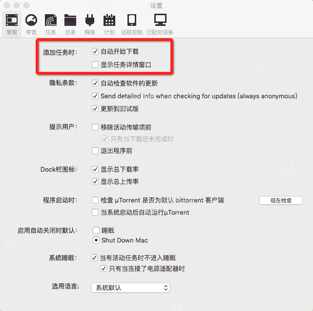 默认打开磁力链设置?时在?uTorrent?的设置中保证打开?自动开始下载?取消?显示任务介绍窗口