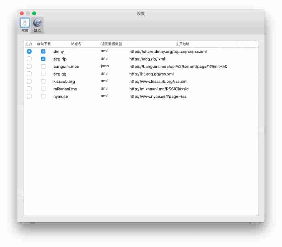 其它RSS假如站点请立即获取iTunes相似https://share.dmhy.Org/topics/rss/rss.xml?keyword=%@这种格式的可以尝试一下增加自己设置站点看能否能够正常使用。(%@代表搜索关键字)