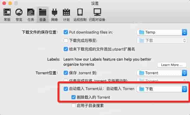 默认下载种子设置?时让?uTorrent?自动载入指定文件夹的 Torrent
