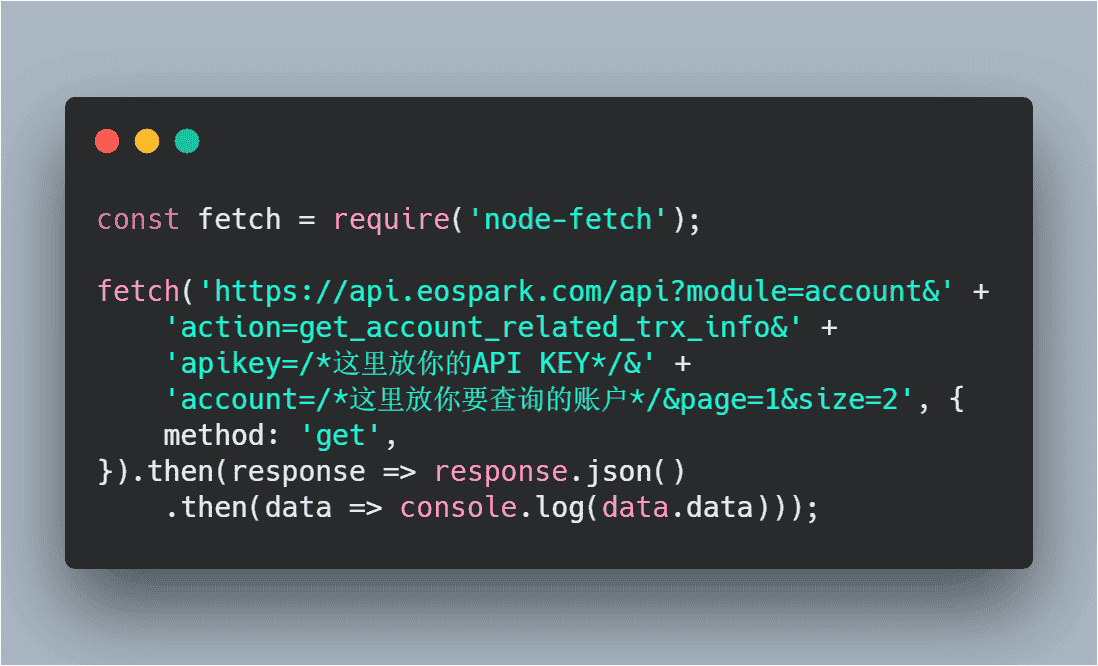 EOSPark HTTPS API 查询 EOS 账户来往交易介绍(get_account_related_trx_info) nodejs 代码基本示例: