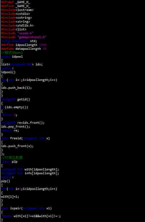 大致就以上这两种事情。但是由于游戏的用户端数量很多,不同的用户端之间进行对局,必需要清晰地解决与管理这些数据。我这里建立了一个idpool,用于id的储存于申请,以防发生错误给客户分配无效或者是重复的id。