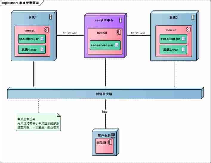 单点登录涉及sso认证中心与众子系统,子系统与sso认证中心需要通信以交换令牌、校验令牌及发起注销请求,因此子系统必需集成sso的用户端,sso认证中心则是sso服务端,整个单点登录过程实质是sso用户端与服务端通信的过程,用下图形容。