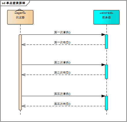浏览器第一次请求服务器,服务器创立一个会话,并将会话的id作为响应的一部分发送给浏览器,浏览器存储会话id,并在后续第二次和第三次请求中带上会话id,服务器获得请求中的会话id就知道是不是同一个客户了,这个过程用下图说明,后续请求与第一次请求产生了关联。