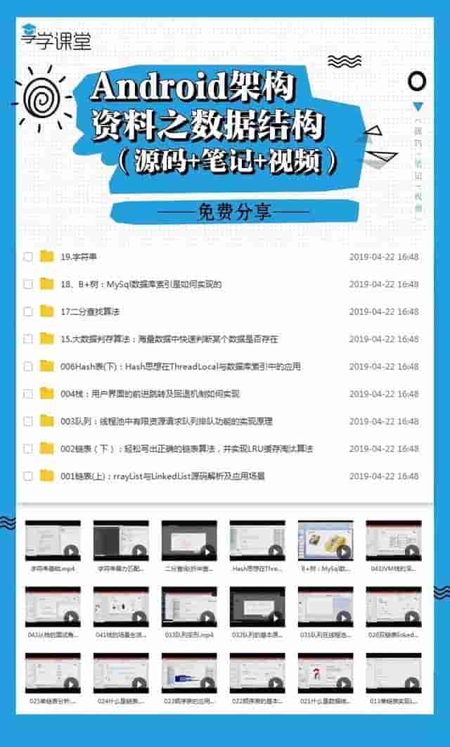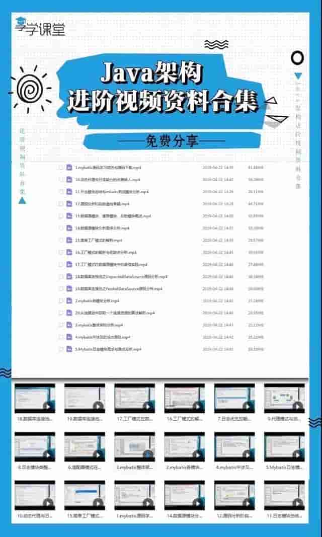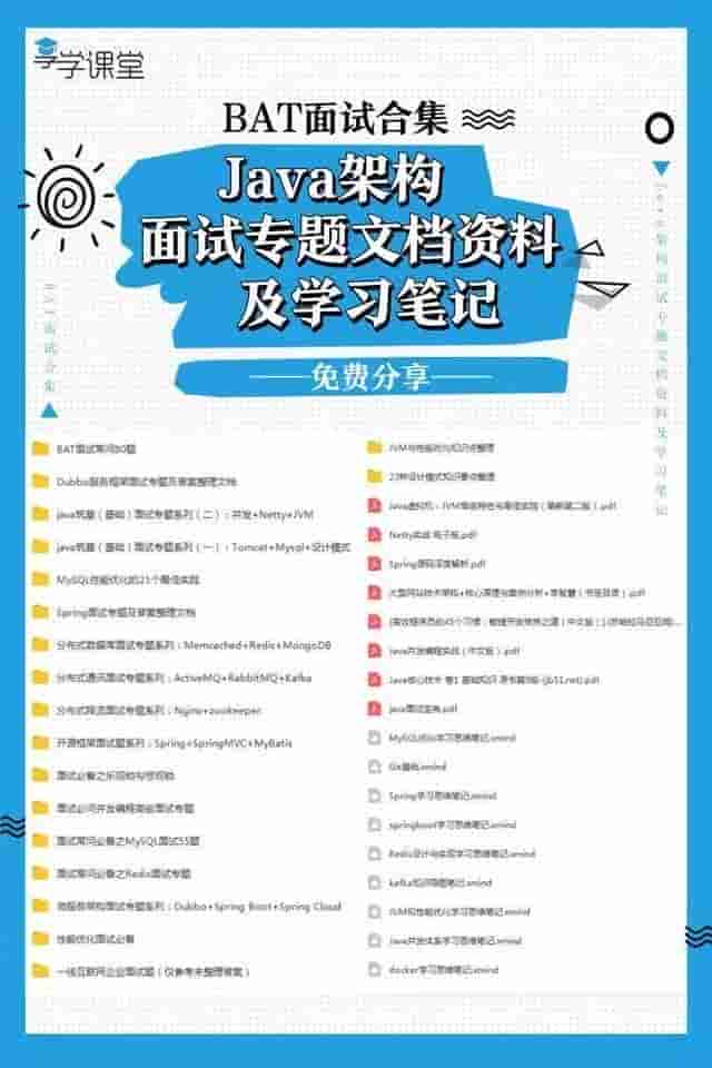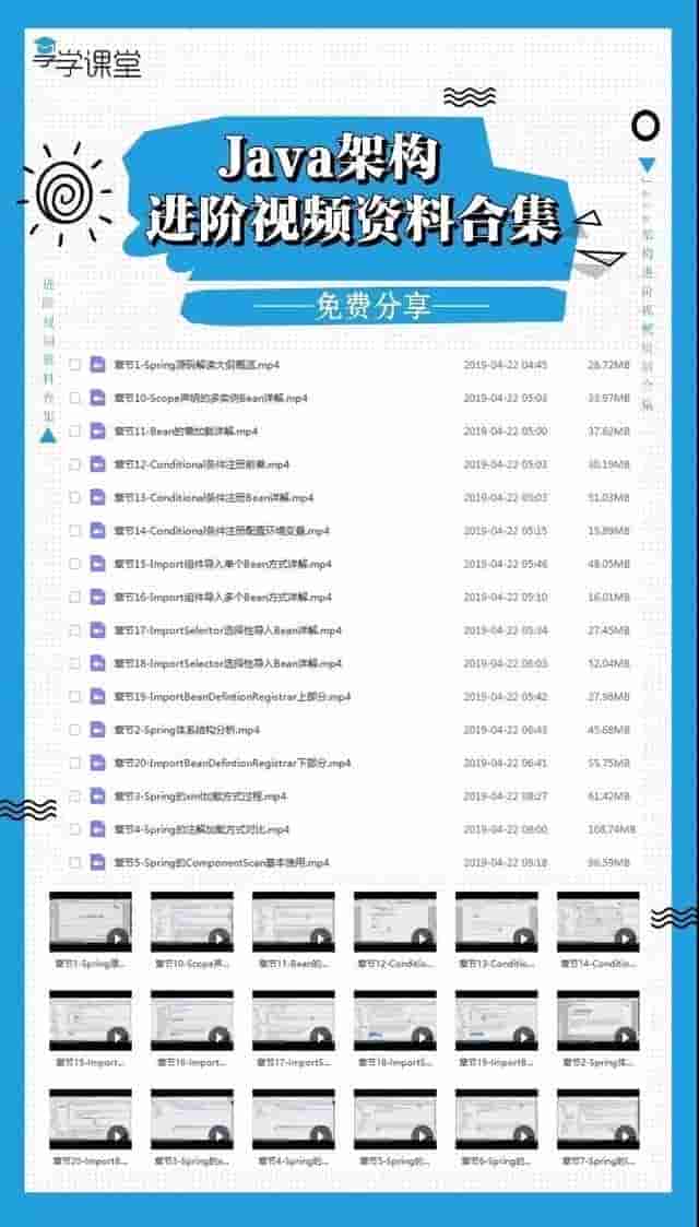 觉得不错的朋友可以点点左下角的拇指小赞一下,同时在这给大家分享少量免费的架构资料(包括 视频,课件,面试专题,学习笔记等)关注官方微信公众号,那里每天都会有技术干货、技术动向、职业生涯、行业热点、职场趣事等一切有关于程序员的内容分享。更有海量Java架构、移动互联网架构相关源码视频,面试资料,电子书籍截止于4月28日免费发放。学习资源丰富实用,有需要的朋友可以来关注,扫描下方二维码关注wx公众号免费获取↓↓↓