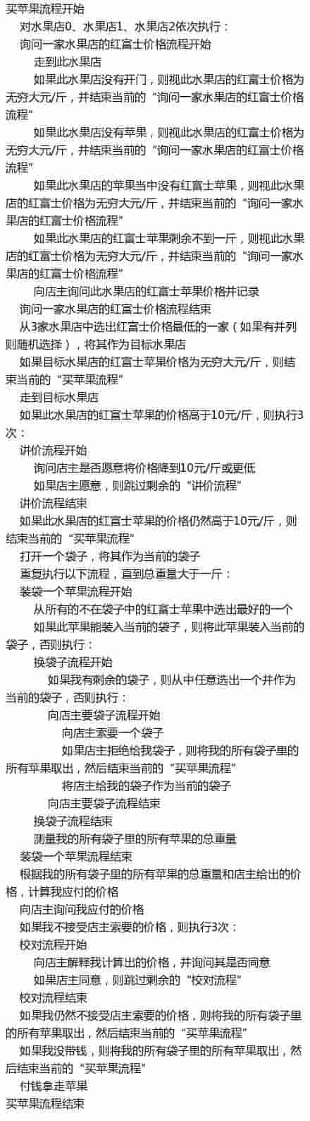 假如3家水果店都有红富士苹果但都不到一斤,但是三家店加起来能达到一斤,那么我不应该结束流程回家,而是应该把三家店的红富士苹果都买下来。
