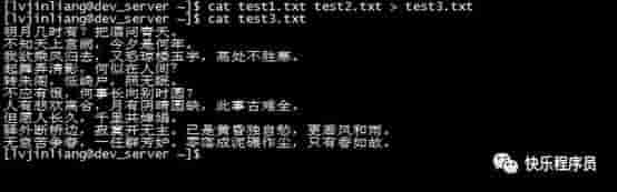 3)?将几个文件合并为一个文件:$cat test1.txt test2.txt> test3.txt