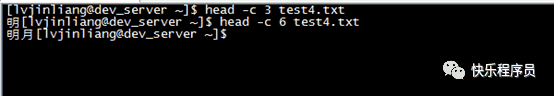 head -c 3 test4.txt显示test4.txt的前3个字节内容;