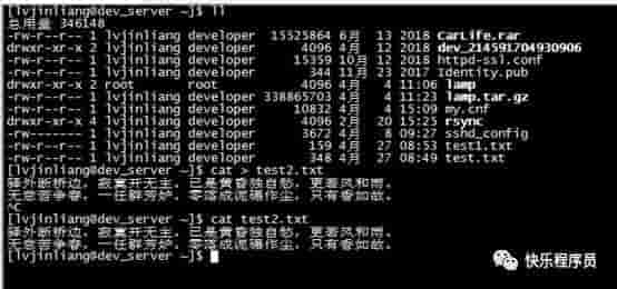 2)?从键盘创立一个文件(用的很少,只能建不能编辑)。$ cat > test2.txt