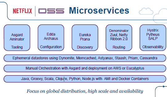 Netflix的微服务架构如下,着重全球分发 高可扩展性和可用性:
