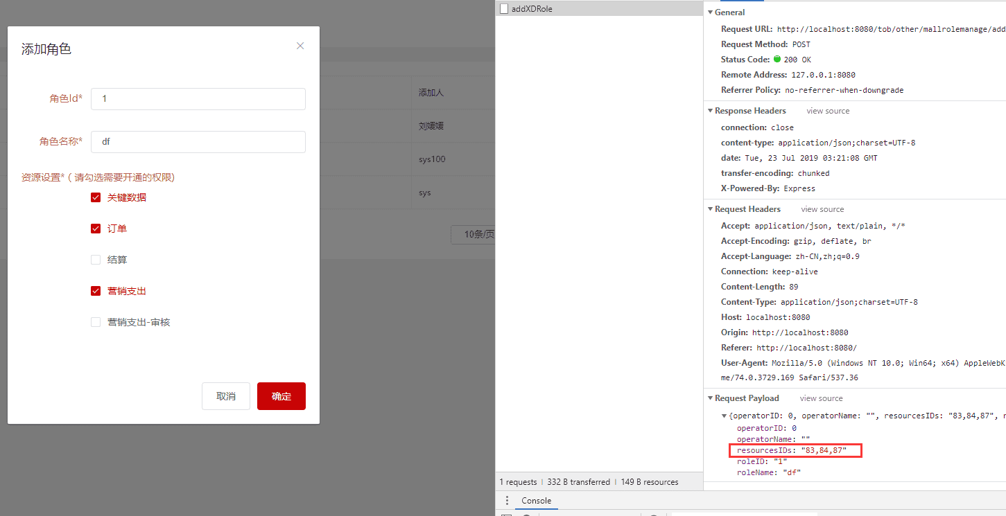 3) 下图所示,点击确定调用接口,红框中的id参数,是后端接口要求的格式,假如有其余的解决方法,欢迎交流~